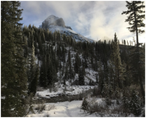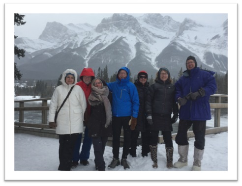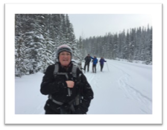 Sunday morning was clear but COLD -20 plus a wind chill. The group, ever optimistic, decided to get to the Cascade Trail and hope the weather was warmer. Unfortunately, it remained at -20, so the decision was to drive to Canmore in search of warmer temperatures and possibly ski at the Nordic Centre. After a coffee break at Beamers, the decision was to go for a walk and then head back to Red Deer. And that is what we did. A nice walk along the river allowed us to chat a bit more and get to know how trip partners even more. Lovely!