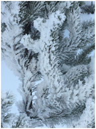 We neared the top of the Fire Guard below the headwall of Storm Mountain and Ivan skied into the pines for a lunch break. The hoar frost was thick and coming off the trees in the light breeze. Ivan pronounced it as rime, not hoar frost, and we had a discussion about surface hoar forming on the snow pack. “What did Felix say about humidity and surface hoar?”