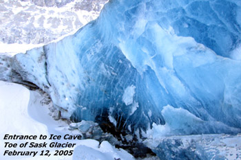 g_sasktoe3_feb122005 ← Previous Next → Entrance to Ice Cave Toe of Sask Glacier, Saskatchewan Glacier Trip
