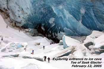 Exploring entrance to ice cave. Saskatchewan Glacier Trip
