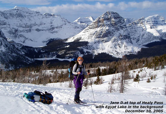 da_egyptlake5_dec102005 ← Previous Next → Jane D. at the top of Healy Pass with Egypt Lake in the background.