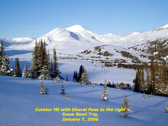 Mt curator with Shovel Pass to the right. Snow Bowl Trip