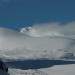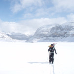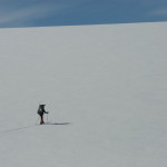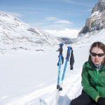 We arrived at the toe of the glacier before noon and had a quick lunch then headed up the glacier towards Castleguard Meadows. The glacier is not very steep but this was my first time using a pulk and I found that pulling the pulk uphill requires different leg muscles than skiing with a pack but the sled slid smoothly over the snow and it was nice not having the weight on my back.