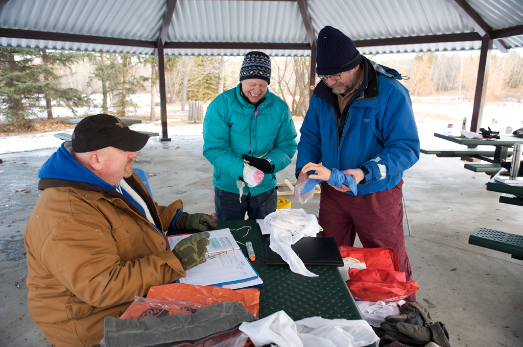 We were fortunate that St. John’s let us use their indoor training facility for the first day as outside temperature were hovering close to -30 C so most of the day was spent reviewing standard first aid skills from the manual rather than outside monitoring the effects of hypothermia. So a big thank you to St. Johns Ambulance! Days two and three were spent outside at Mackenzie Trails in much warmer conditions.