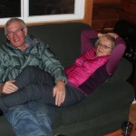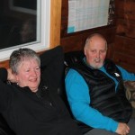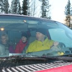 Frank got everyone’s attention when his foot slipped on the step into Todd’s sweet-‐ smelling diesel truck (notice the rapt expressions) but all’s well that ends well. I’d say Frank looks pleased with his hug from Janet.