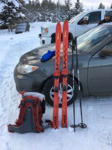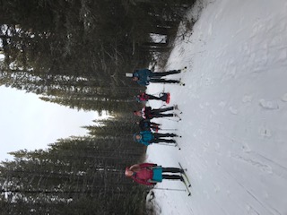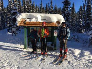 Ivan offered a couple of coaching tips to Bill, who has only had to pay for one skiing lesson in his life. When skiing out through the trees, remove your hands from the straps of your ski poles to prevent dislocating a shoulder. You might drop a pole once or twice and have to retrieve it, but this is preferable. Bill took Ivan’s advice after catching a basket a couple of times. The second tip has already proved its weight in blueberry tea. Ivan told Bill he was leaning too far forward which affected his balance. His descriptive analogy was to pretend “your ass is over the toilet” or as Bill considered this, “your royal bum is over the throne”. This resonated and Bill is still utilizing the technique even on skinny skis from Great Chief Park to Heritage Ranch. On the last part of the ski out, Ivan led Bill through more soft snow through the trees, which was way more fun than clattering down the hard pack.
