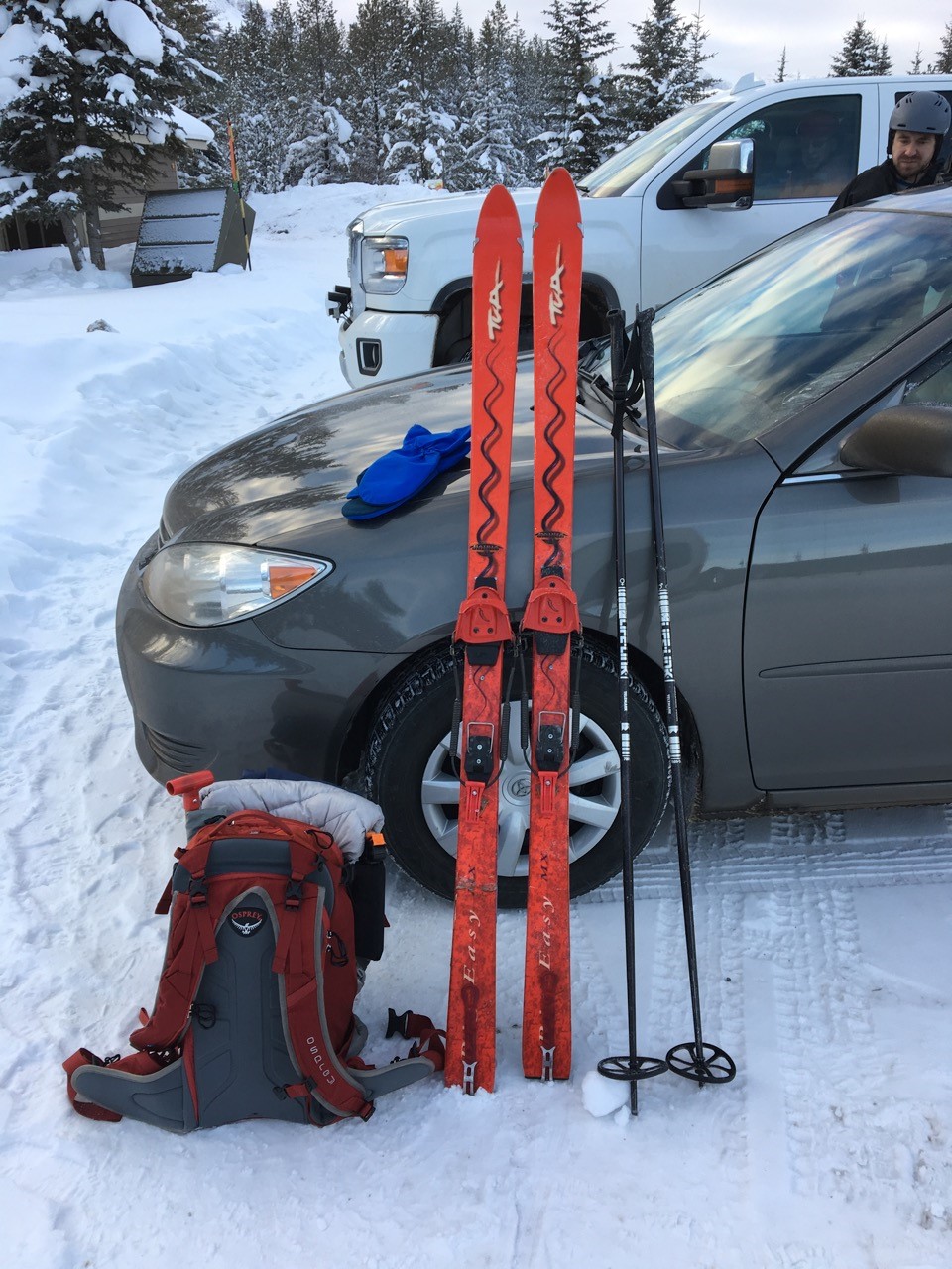 The “take your hiking boots in case” approach is something we are very familiar with in Australia where the snow can be marginal to non-existent.  All the discussion about skins, wax, type of skis was a bit beyond me, as down under, an old pair of fish-scaled skis serves me and Peter well.
