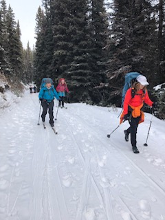 Another cold weekend in the Canadian Rockies, but this did not deter a hardy band of skiers from Parkland Cross Country Ski Club on the first weekend of the New Year. The skiers met up at the Lake Louise Alpine Centre on the Friday night and enjoyed a bit of socializing before retiring. There were eight of us that evening, but two needed to bow out of the back-country tours arranged.