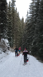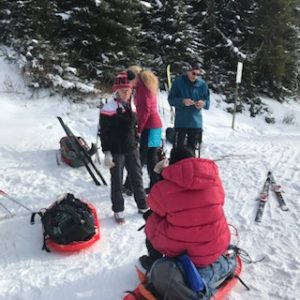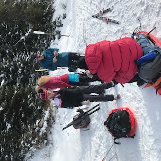 Everyone was incredibly impressed with Nancy and Linda’s ability to ski with great control both up and on some tricky descents with their pulks behaving well behind them.  More impressive was Lisa’s ability to keep up with us without skis.