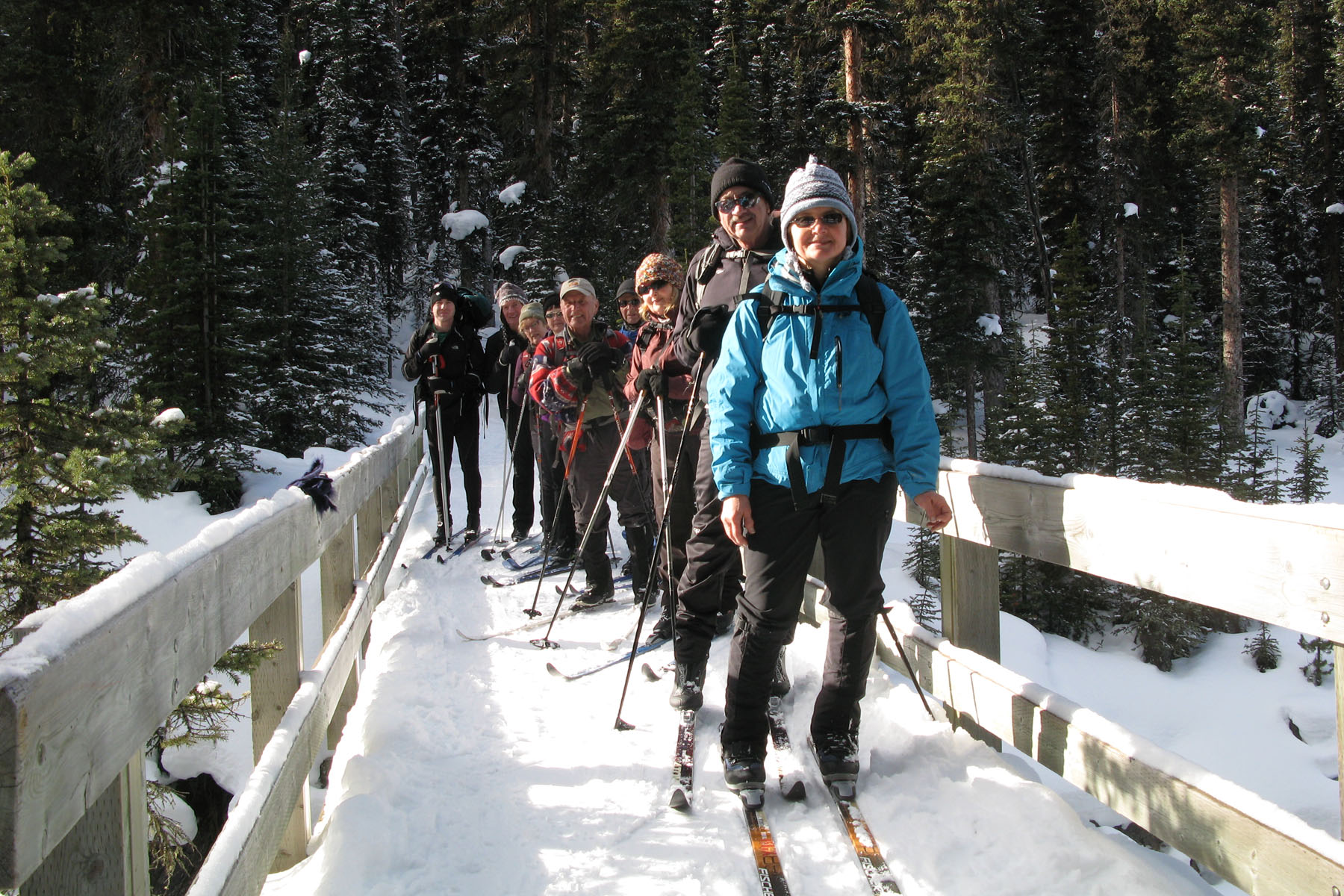 We set out for beautiful Kanannaskis Country on Friday. This is the first ski trip with the Parkland Ski Club that I have ever participated in. I had heard a lot of good things about the trip before I signed up. I actually heard more about the food than about the skiing itself! The last of us arrived at around 8pm on Friday night at the Ribbon Creek Hostel. It was a cold night, about -26 Celsius, and very dark. We had a trip meeting that night and decided that we would start off the ski as group and then separate into two groups. Marilyn was the leader for one group and Jane lead the other group.