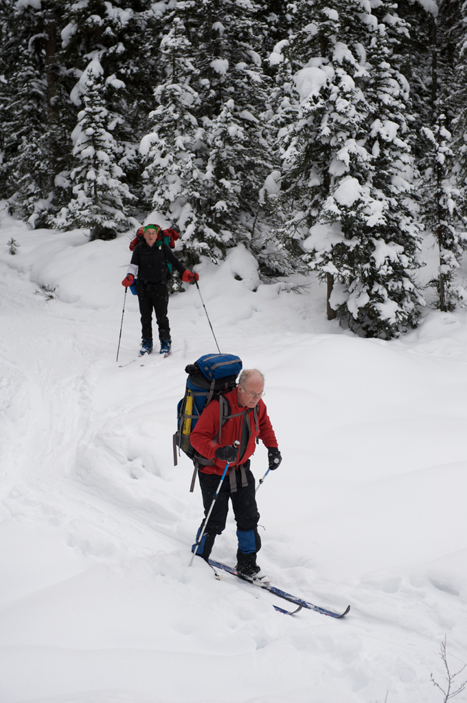 Minus 20º Celsius temperatures didn’t deter a dozen club members from heading up towards Nigel Pass for the first back country trip of the season. The initial plan was to spend Saturday doing turns at Parkers Ridge but some prior scouting on Friday by Vance and Derry found that snow conditions were not favorable for turns so we switched to Plan B and headed for Nigel Pass.
